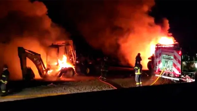 El incendio consumió la importante maquinaria de la empresa Conevial, que opera en la construcción de la ruta Circunvalación, un sector que es foco de un conflicto.