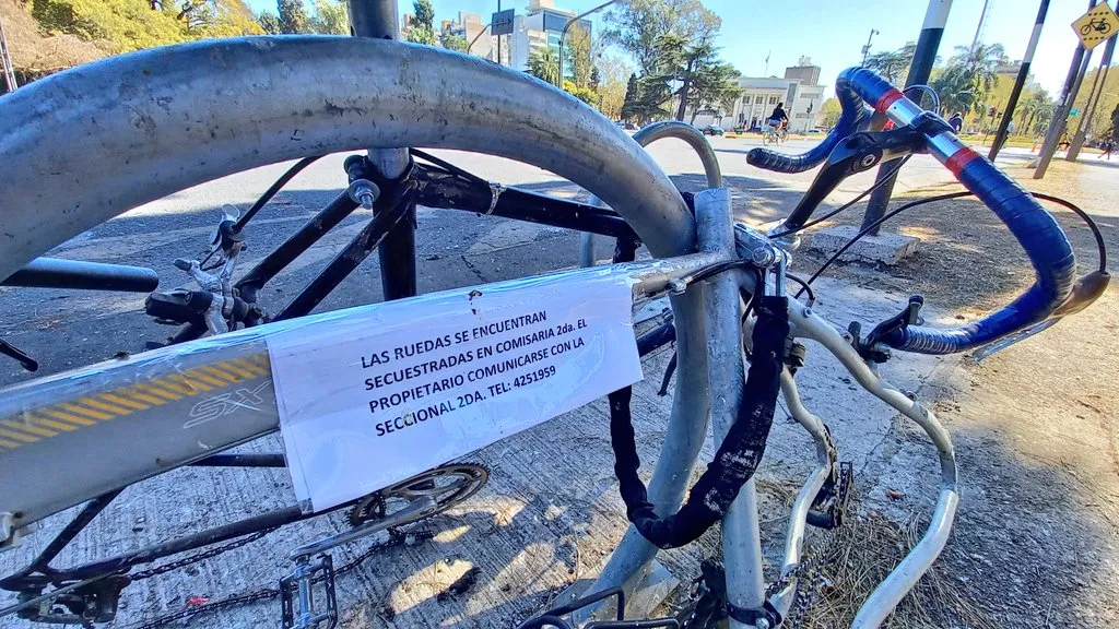 La semana pasada, Red Boing había publicado la historia de dos bicicletas atadas a un bicicletero en Pellegrini y Oroño. Les habían robado una rueda a cada una y sus dueños no aparecían, pese a que Fiscalía había detenido al ladrón y había dejado un cartelito avisando que podían buscar la rueda que les faltaba en la Comisaría 2da.