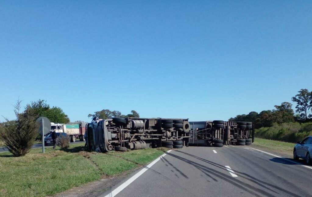 La Autopista Rosario – Santa permanecía cortada en la mano que va hacia la capital provincial a la altura del kilómetro 64. Llegando a la localidad de Monje, un camión con acoplado perdió el control y volcó, quedando atravesado sobre la calzada.