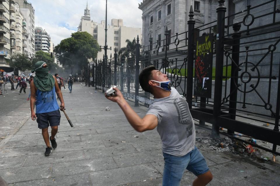 En ese sentido, los registros muestran las piedras arrojadas desde las afueras del establecimiento contra las ventanas de su oficina. También se pueden ver daños en el despacho de reuniones de Cristina Kirchner, donde en el momento de la violenta protesta se encontraba reunida con los senadores Oscar Parrilli y Anabel Fernández Sagasti y su hijo, el diputado Máximo Kirchner, quien finalmente votó en contra del acuerdo.