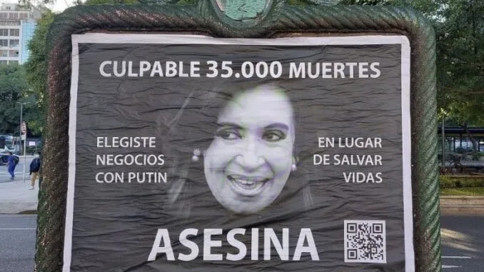 El incidente se remonta al 28 de marzo de 2022, cuando la Ciudad de Buenos Aires amaneció cubierta de afiches con la imagen de la ex vicepresidenta y las frases “Culpable 35.000 muertes. Asesina. Elegiste negocios con Putin en lugar de salvar vidas”, en referencia a las víctimas de la pandemia de Covid-19.