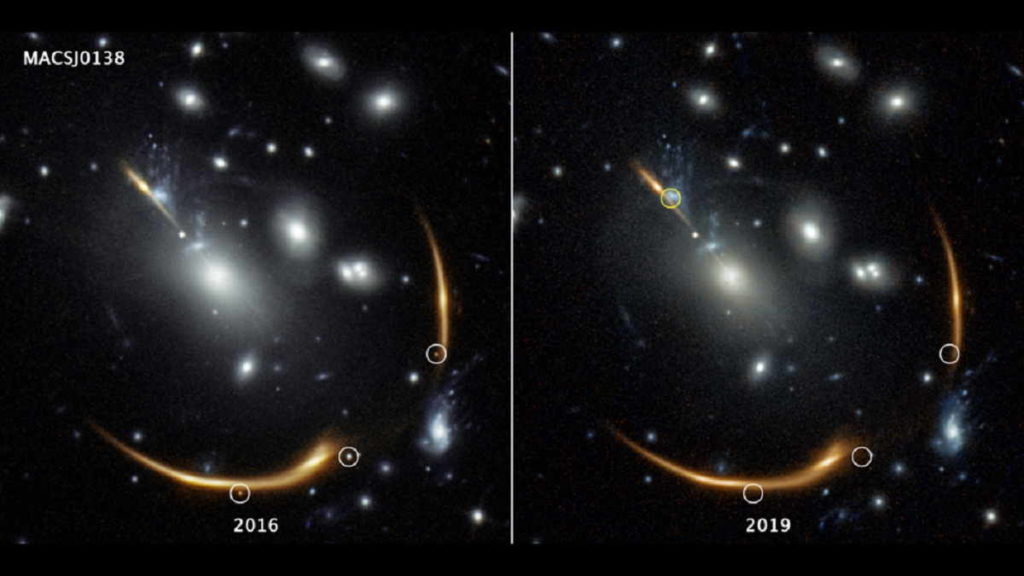 Tras analizar los datos obtenidos, observaron tres fuentes de luz brillante en una galaxia de fondo que eran evidentes en un conjunto anterior de observaciones de 2016, al volver a visualizar ese área en 2019 ya no se veía. Estas fuentes de luz se trataban de imágenes de una supernova.