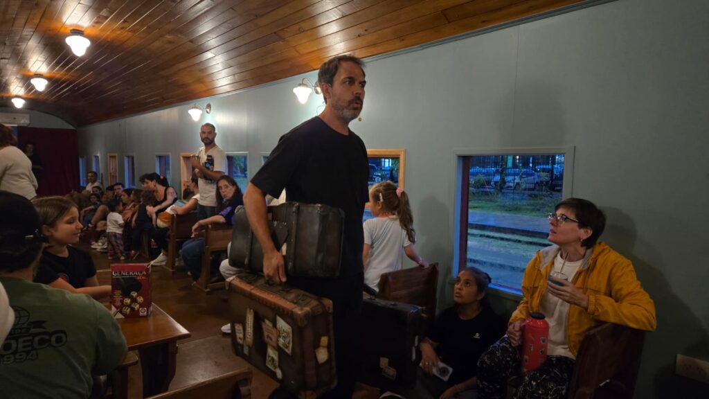 El murmullo infantil se fue apagando cuando Lautaro Lamas, actor y escritor, comenzó a cantar y a divagar por el vagón. De pronto, un silencio atento estaba enfocado en el narrador de las historias que el público había ido a escuchar ese viernes por la tarde.