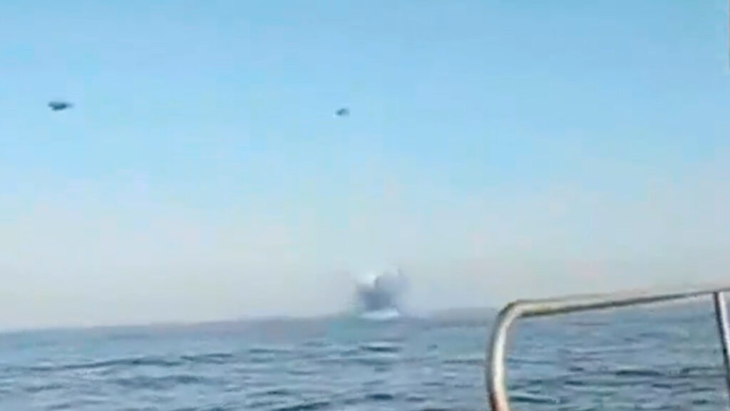 El video muestra la desesperación de un grupo de pescadores a bordo de un barco local que logró divisar la extraña nave que era perseguida por las fuerzas militares estadounidenses. Lo más llamativo es que se observa el momento exacto en que el objeto no identificado introduce en el agua ante la mirada atónita de los que registraban la secuencia.