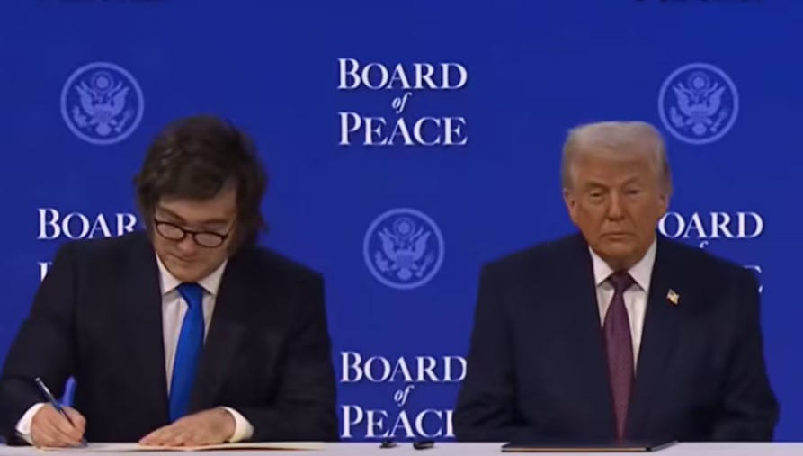El Presidente Javier Milei participó de la Ceremonia de Firma del Board of Peace que impulsa el Presidente de los Estados Unidos de América, Donald Trump, siendo la República Argentina miembro fundador de esta nueva organización de países para buscar la paz en zonas de conflicto. pic.twitter.com/VtxVSNmKi8