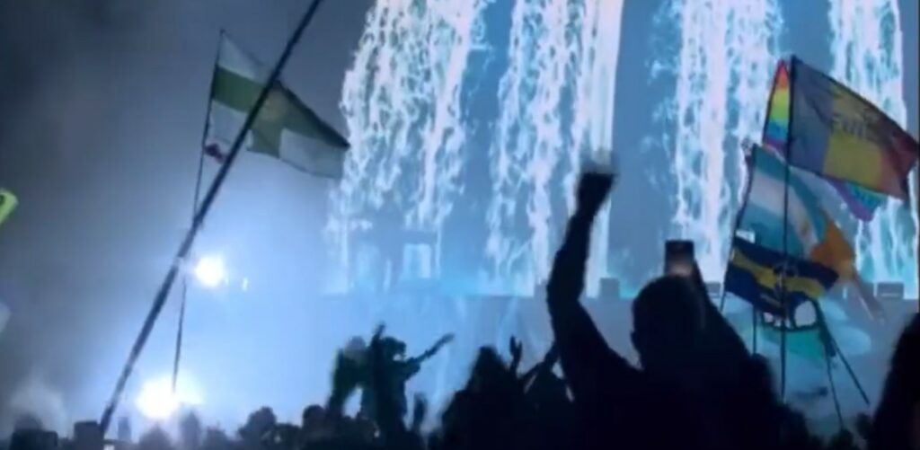 La bandera argentina y la bandera de Boca en el recital de Billie Eilish en Glastonbury. pic.twitter.com/q5GbSxNiTf