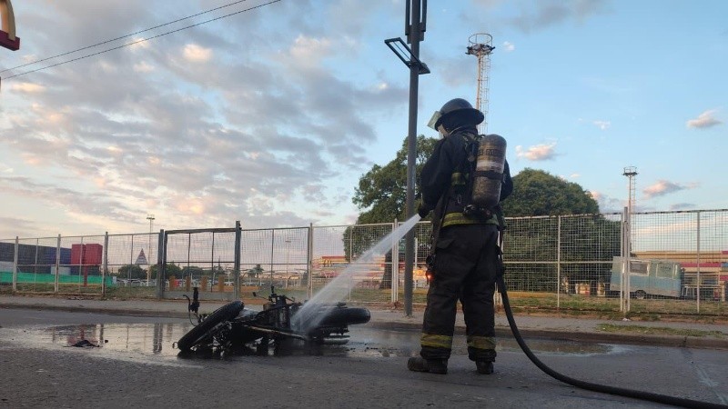 El aviso a los servicios de emergencia ingresó a las 6.25 y, al arribar al lugar, personal de Bomberos Zapadores encontró el motovehículo tendido sobre la cinta asfáltica con un foco ígneo activo. De acuerdo al parte oficial, no había personas intentando sofocar las llamas al momento del arribo de la dotación, lo que permitió a los bomberos iniciar de inmediato las tareas de extinción.