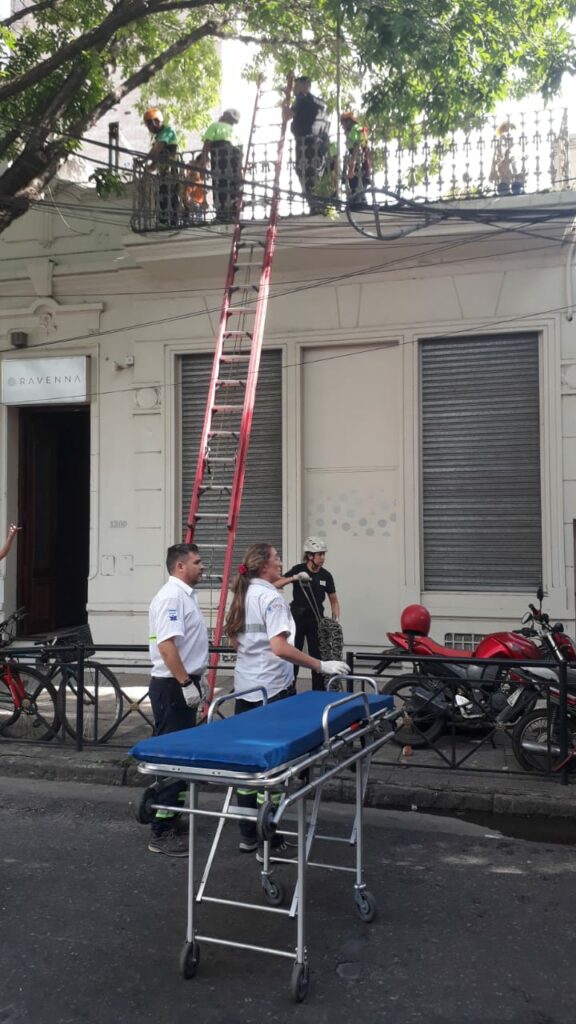 El trabajador herido fue asistido por el personal de Bomberos Zapadores y de Defensa Civil quienes lo ayudaron a salir del lugar para que pueda ser atendido por el servicio de emergencias. El operativo para descenderlo se realizó por una terraza lindera, ya que la caída afectó toda la medianera y se considera riesgoso el ingreso por la obra.