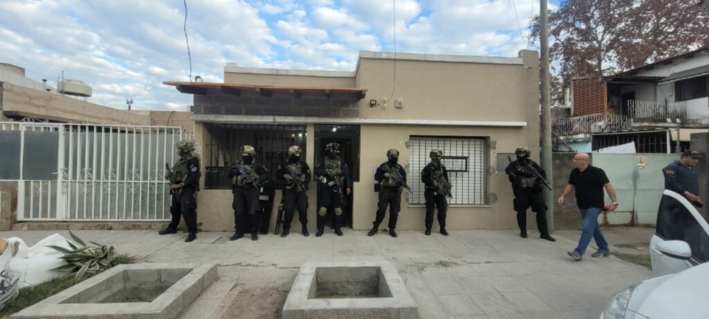 En horas de la tarde se produjeron ocho allanamientos en la ciudad de Rosario, en Zuviría al 6900 y más domicilios en zonas aleñadas. Dichos allanamientos tienen que ver con la vinculación de un grupo de sicarios de una facción de la banda “Los Monos”, conocidos como “LA MAFILIA”, dedicada al narcomenudeo, acusados de los hechos que fueron de público conocimiento durante el año 2023 ligados a homicidios, amenazas y balaceras a viviendas, escuelas y negocios, todo dentro de la guerra entre bandas por el control del territorio.