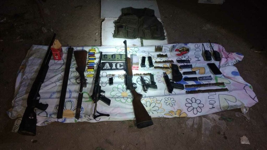 En los allanamientos se logró secuestrar gran cantidad de armas de fuego: cinco pistolas de diferentes calibres, cinco escopetas, municiones, teléfonos celulares, un handy, dinero en efectivo, dos motos, tres autos y otros elementos de interés para la causa.