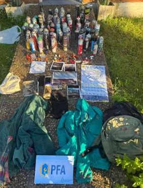 Durante los operativos se notificó de la causa a los tres investigados y se incautaron más de 100 aerosoles de distintos colores, 64 picos para grafitis, gran cantidad de latas de pintura, pinceles, una balanza de precisión digital, cuatro netbooks, trece teléfonos celulares y demás documentación de interés para la causa.