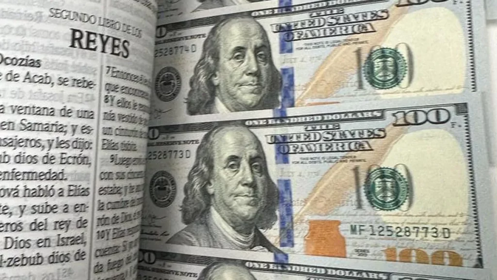 Al romper el sello del envío, las autoridades encontraron tres Biblias de “letra gigante”. Entre las hojas dieron con US$16.800. En una de ellas había US$2.500, US$4.300 en la segunda y una suma de US$10.000 en la tercera, según confirmaron desde la investigación al medio Infobae.