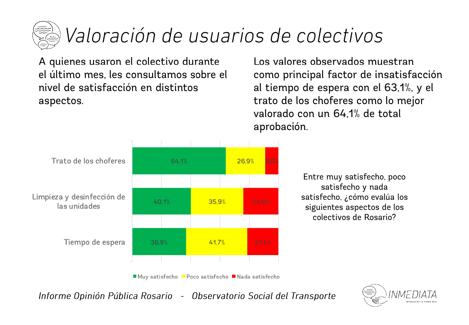 La consultora Inmediata hizo una encuesta de calle en abril donde consultó a 400 rosarinos sobre la situación del transporte y en otro orden de cosas se preguntó por el trato de los choferes, limpieza y desinfección de unidades y el tiempo de espera.