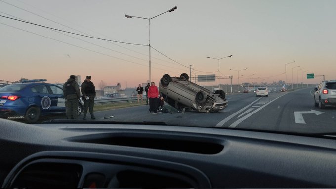 Este viernes por la mañana se registró un accidente en la zona de Oroño y avenida de Circunvalación, donde un auto terminó volcado por causas que aún no fueron determinadas.