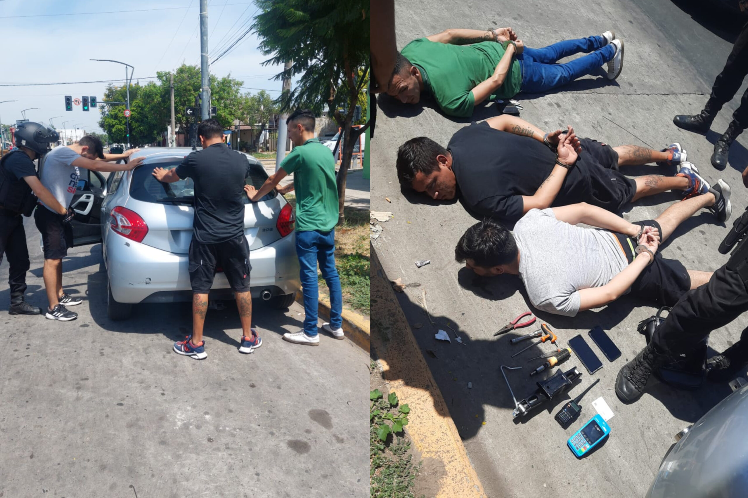 Alertados por la denuncia de un individuo que advirtió que era seguido por un vehículo marca Peugeot 208, el personal de la Policía Motorizada se hizo presente en el lugar de las avenidas 27 de febrero y Roullión y advirtieron que los ocupantes del vehículo no eran los titulares del mismo. Cuando se les solicitó detenerse y al momento de requisar el automóvil, se encontró en el interior una cartera a nombre de una mujer, quien fue notificada y se acerco al lugar e indicó que su cartera había sido sustraída en avenida Pellegrini y Perú.