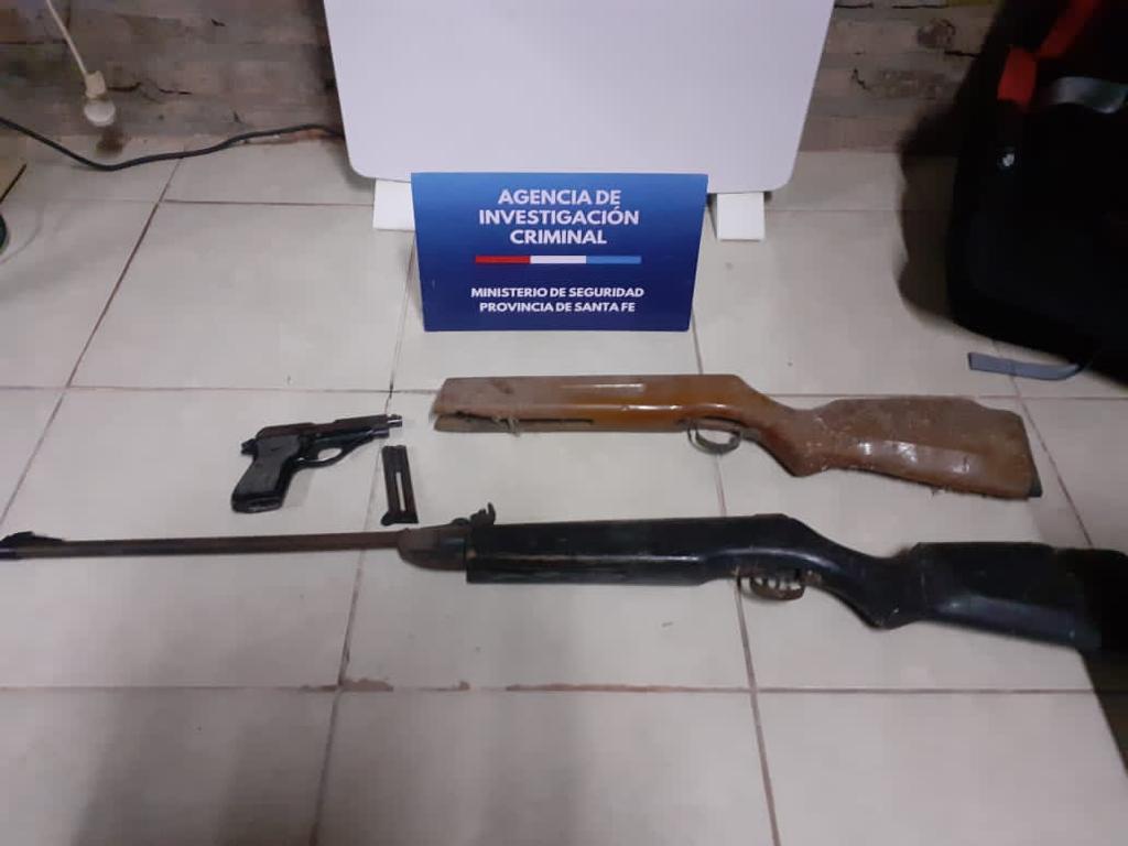 Al mismo tiempo se estaba llevando a cabo otro operativo por parte de la Agencia de Investigación Criminal en un domicilio ubicado en Vélez Sarsfield al 5800. Allí, personal policial incautó tres celulares y procedió a la detención de otro de los acusados, de 23 años. Simultáneamente, otro de los allanamientos se daba en una finca de nuestra ciudad. En el lugar se secuestró una pistola bersa, calibre 22 y tres municiones. Además, agentes policiales encontraron un rifle y una culata de un arma de aire comprimido. Este operativo tuvo como saldo un detenido más.