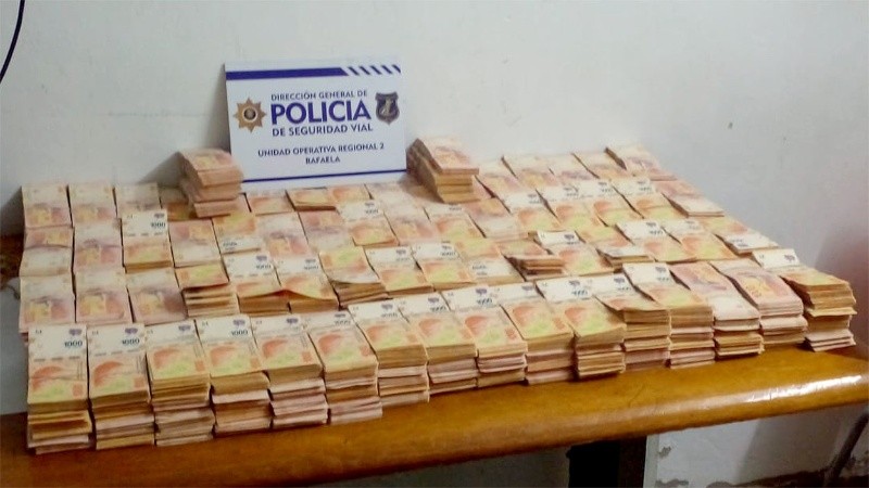 El descubrimiento se dio en el marco de un operativo de control vehicular sobre el kilómetro 159 de la vía. Los efectivos revisaron el coche y detectaron dos cajas con casi 28 millones de pesos, de los cuales los viajantes no pudieron declarar.