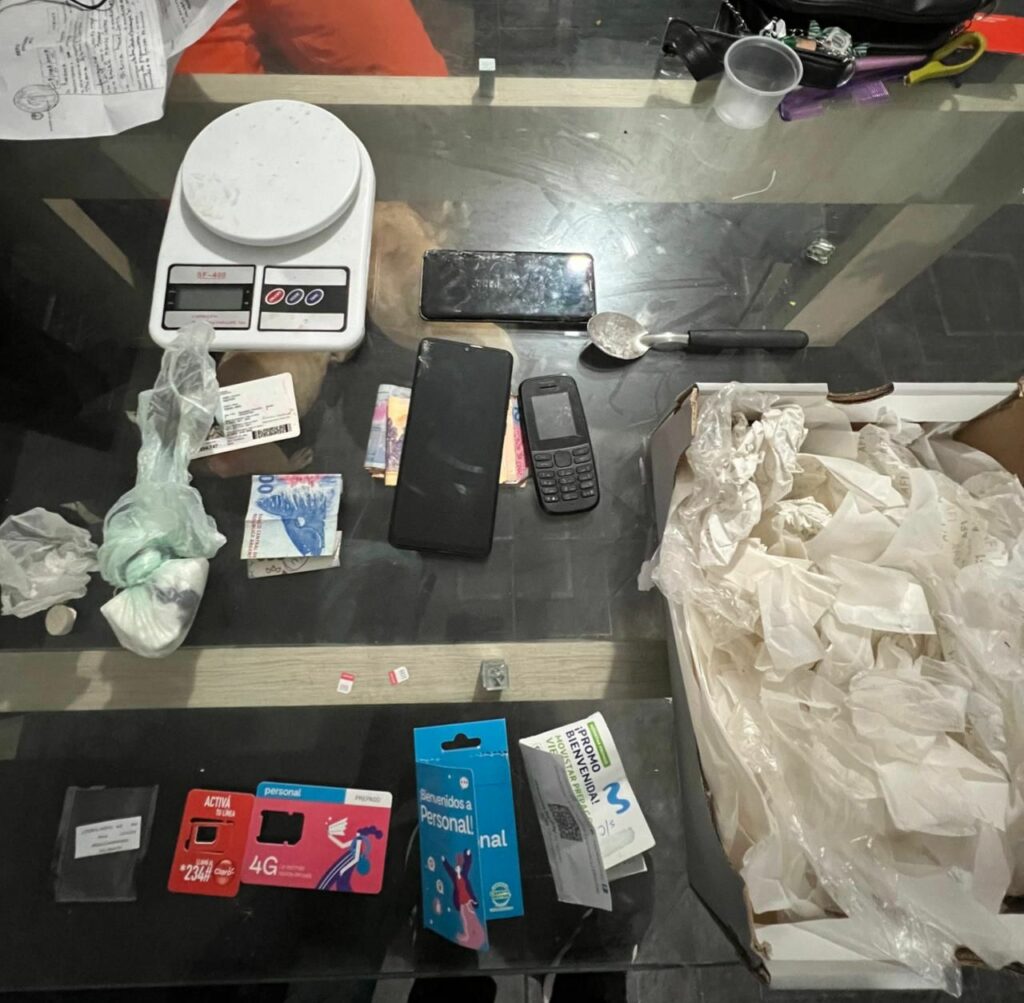 En otro de los domicilios allanados, detuvieron a dos mujeres menores de edad, a las cuales le secuestraron 50 dosis de cocaína fraccionada para la venta, marihuana, seis teléfonos celulares, una balanza de precisión, precintos plásticos, y envoltorios de nailon presuntamente destinados para el fraccionamiento del material indicado. Intervino el Juzgado de Menores en turno.