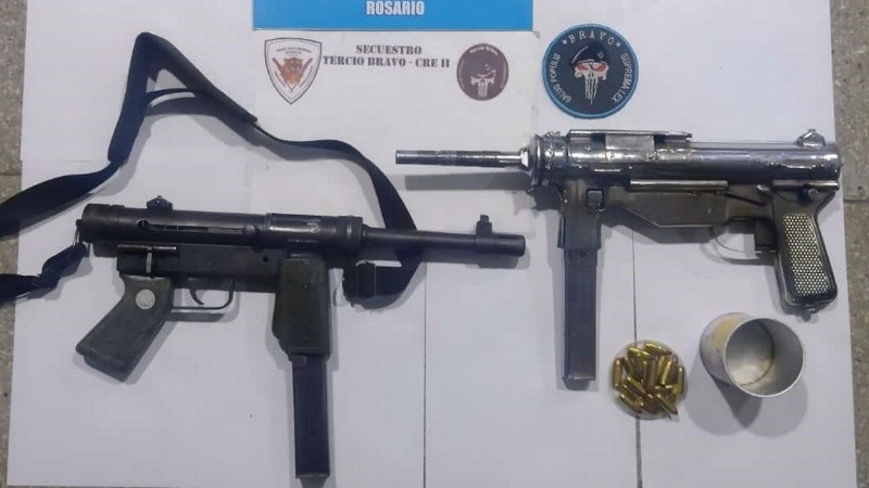 De acuerdo a lo expresado por fuentes oficiales, se trataba de una ametralladora marca PAM1 calibre 9mm plateada y una marca Halcón MRL calibre 9mm carabina semiautomática. Ambas estaban cargadas con siete y quince municiones respectivamente. Además, había un recipiente con otros 20 cartuchos.