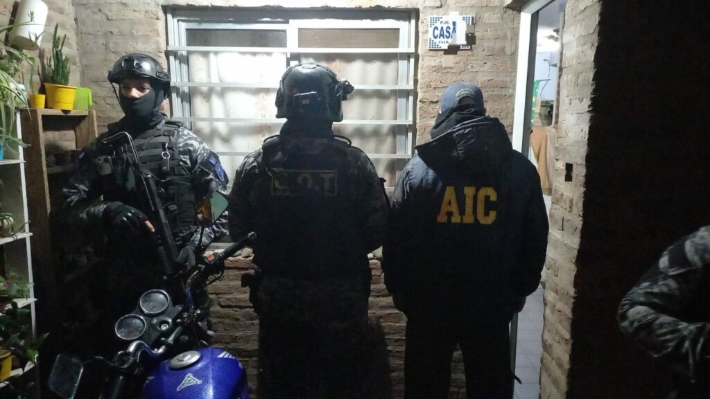 Los distintos allanamientos se llevaron a cabo en calle Chumbicha al 4000, San Lorenzo 4900, y calles Alice y Isola, donde además de la detención de este hombre, los efectivos procedieron al secuestro de telefonía celular. En colaboración con la AIC, trabajaron: los grupos de irrupción del G.I.R.I, G.O.T de la UR.XVII, UR.XV.