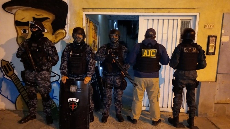 Los allanamientos por este crimen se dieron en viviendas de calles Callao al 3900, Medici al 4700, Ercilia al 200 bis, Oroño y Uriburu, Garibaldi al 200, Italia al 3800, Pte. Quintana y Rodríguez (cochera), otra cochera en calle Garay, una vivienda en calle Necochea, un pasillo de Chacabuco al 3900, y una vivienda en calle Aguaribay, intersección esquina El Timbó, en Alvear.