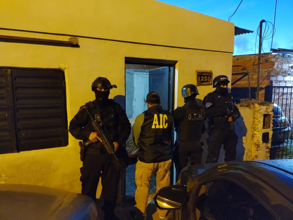 Los allanamientos se llevaron a cabo en dos domicilios, uno de ellos en Pasaje Ñandubay 1250 bis, de de Rosario, donde se procedió a la detención del principal investigado, de 41 años de edad, sobre quien según la pesquisa cumplía rol de proveedor de estupefacientes. En el mismo inmueble se procedió al secuestro de un arma de una pistola calibre 9mm; cartuchos del mismo calibre; dos automóviles, de los cuales uno de ellos presentaba pedido de secuestro activo por robo y gran cantidad de estupefacientes fraccionados de cocaína y marihuana.