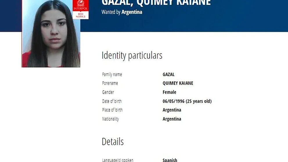 Quimey Kaizane Gazal, una de las diez mujeres más buscadas en la Argentina, fue detenida este viernes en el partido bonaerense de Esteban Echeverría y quedó a disposición de la Justicia. La joven de 25 años tenía pedido de captura internacional e integraba la lista de notificaciones rojas de Interpol.
