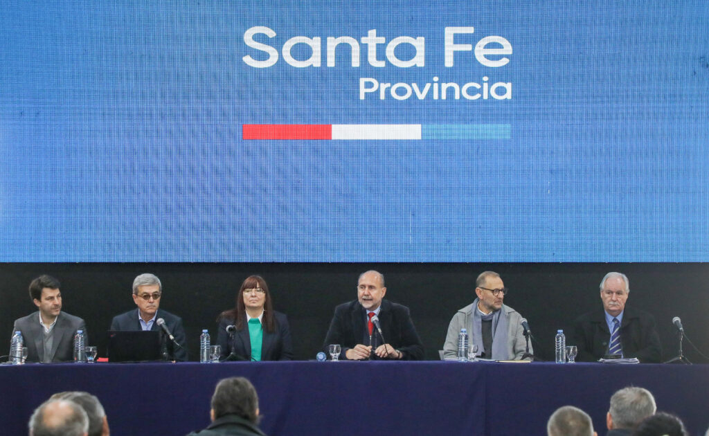 El mandatario santafesino sostuvo que “vamos a presentarles las características del acuerdo, la composición de los títulos porque, claramente ustedes son parte de lo que corresponde en el pago de esas acreencias y esos títulos, con los porcentajes que corresponden a la coparticipación de cada uno de los municipios y comunas de la provincia”.