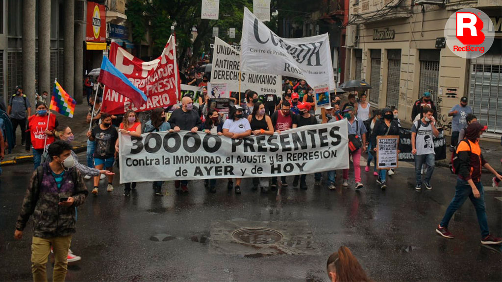 En el marco del 45 aniversario del último golpe militar en la Argentina, la movilización de organismos de Derechos Humanos avanzó por el centro de la ciudad hasta el Monumento a la Bandera. Con carteles que señalaban “30.000 presentes contra la impunidad, el ajuste y la represión”. También participaron representantes de Abuelas y Madres de Plaza de Mayo, e integrantes de la agrupación HIJOS.