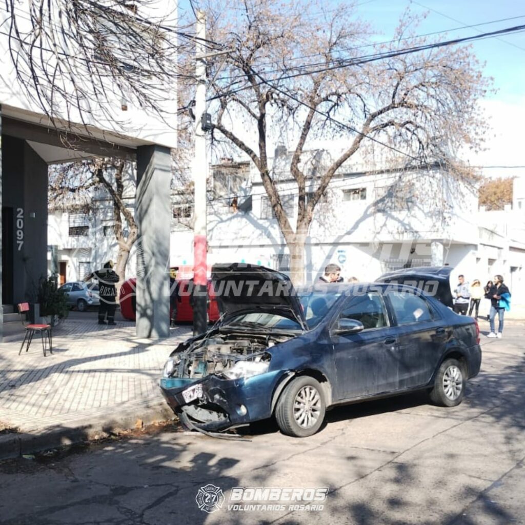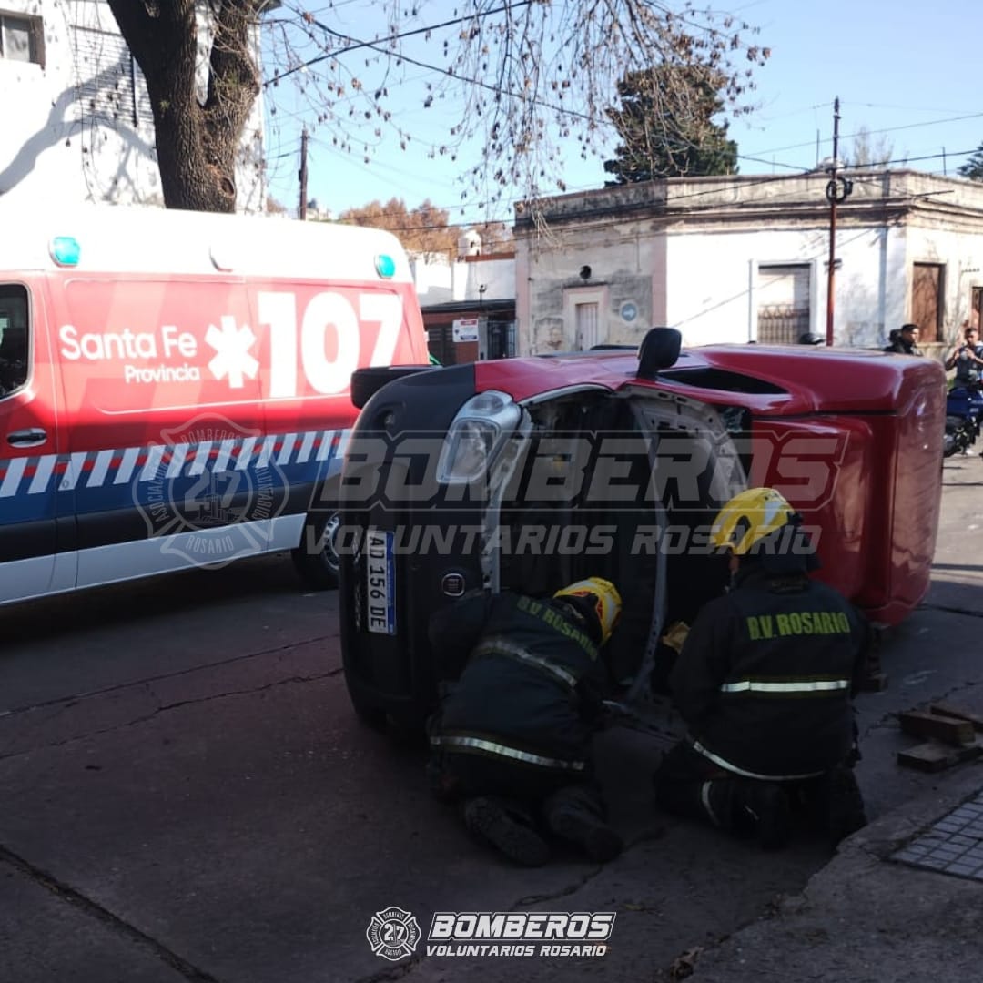 Una dotación de bomberos salió a las 13:35 de este domingo para trabajar y rescatar a los involucrados en el accidente en esa esquina rosarina. Hasta el momento se desconoce cómo se originó el choque entre un utilitario Fiat y un Renault Sandero.