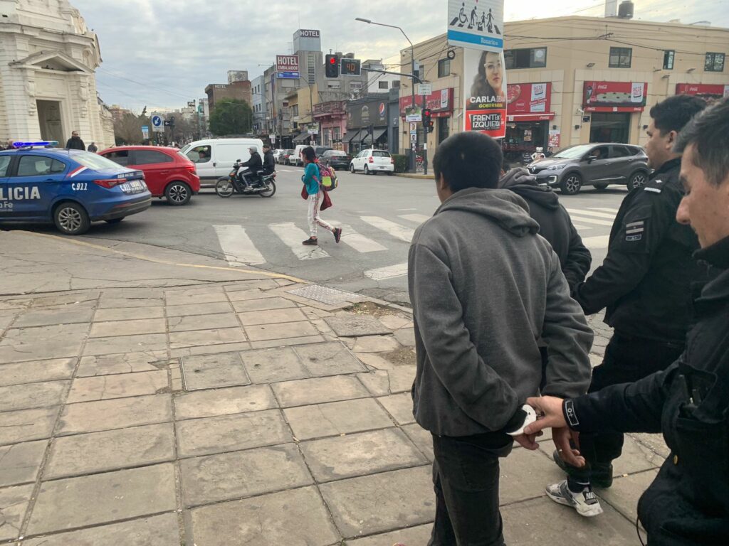 Pasadas las 16:00 hs en la zona de la Terminal de Ómnibus de Rosario (Santa Fe y Cafferata), dos jóvenes fueron aprehendidos por la policía después que causaran robos reiterados en el lugar. Los detenidos son dos adolescentes de entre 20 y 23 años, Máximo Cuellos y Agustín Gonzáles.