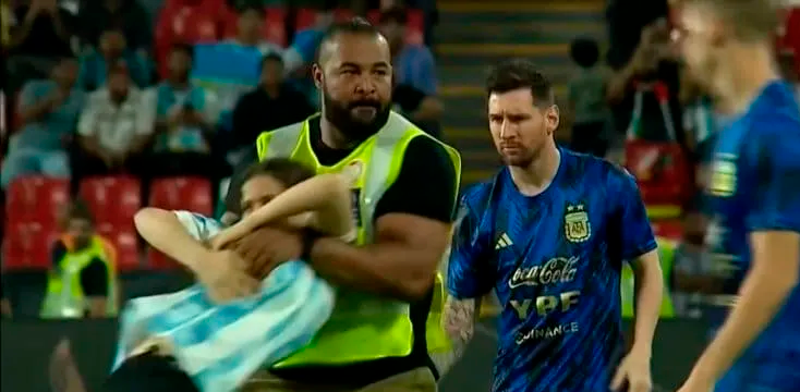 Minutos después de que sl combinado dirigido por Lionel Scaloni estaban por terminar el calentamiento, dos mujeres se metieron al capitán de la Selección Argentina. La seguridad logró frenar a las dos simpatizantes. Aún así, las medidas que tomaron fueron un tanto peligrosas.