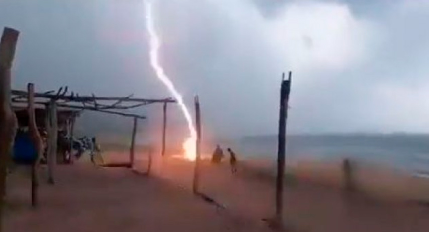 Dos personas perdieron la vida luego de ser alcanzadas por un rayo en una playa de México. El momento espeluznante quedó registrado a través de una grabación de un celular de otra persona que se encontraba en la zona.