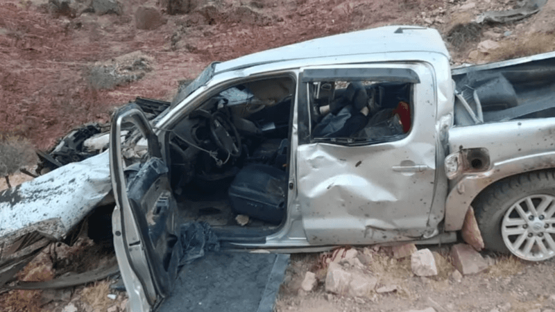 El siniestro vial fue protagonizado por una camioneta Toyota Hilux que desbarrancó en una curva y luego cayó unos 70 metros, quedando sobre el lecho de un río estacional.