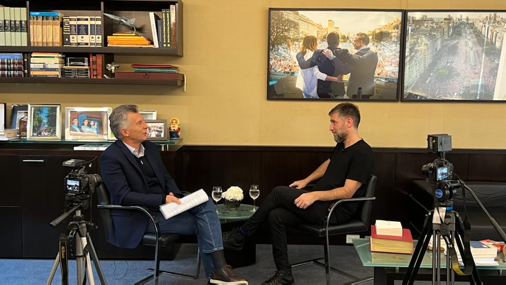 El ex presidente de la Nación, Mauricio Macri, le abrió las puertas de su despacho de Olivos a Nacho Russo, conductor de Todo Pasa, para participar de Mano a Mano, el ciclo de entrevistas de RedBoing. De jean, camisa y saco, el referente de Juntos por el Cambio analizó las distintas situaciones que atraviesan a la Argentina y se refirió tanto a la carrera de Javier Milei como al caso de Sebastián Villa.