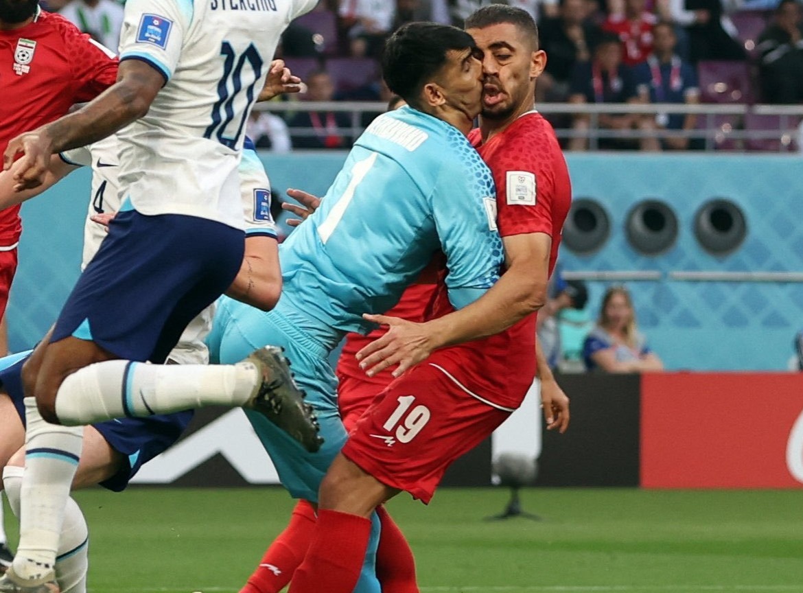 Alireza Beiranvand intentó salir a cortar un centro que cayó dentro de su área desde el sector derecho del ataque del elenco inglés. El arquero calculó mal el movimiento y le erró a la pelota, pero terminó impactando de lleno contra un defensor de su mismo seleccionado.
