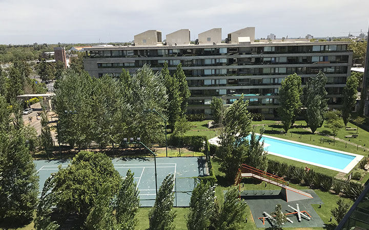 “Ahí aparece MOR. Uno de los arquitectos que tenía era Damián Calabrese, que era amigo mío de la secundaria, del rugby, de las salidas”, afirmó Greci Hazzi. Que enseguida relató que su viejo amigo, devenido en desarrollador, le ofreció hacerse una casa en Puerto Roldán. “Me animo a elegir dos terrenos pegados, de 1200 metros cada uno. Y otro de 800 metros, del otro lado del lago. En ese más chico, había proyectado hacerme una casa para mí. Y en los otros dos terrenos, les generé un diseño muy llamativo con una pared de vidrio sostenida por siete columnas en V”, aseguró.