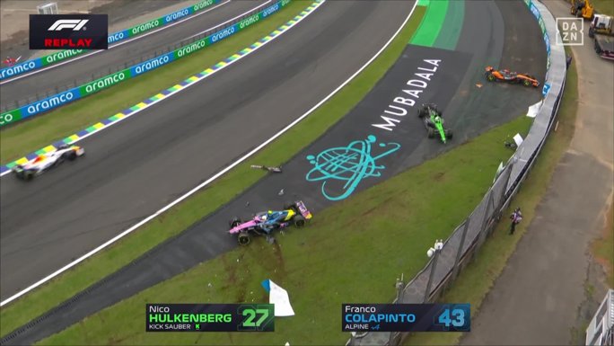 Hasta ese momento, Franco lo venía aguantando bien a Gabriel Bortoletto, el brasileño que por primera vez corre en Fórmula 1 en su país y por el que ya hay devoción. Colapinto había largado bien, adelantando un par de puestos en la largada, entre ellos al juvenil local de Sauber, que a su vez tendría casi al final otro choque, realmente espectacular y que nos asustó a todos. Algo pasó, porque su DRS quedó abierto, no llegamos a saber por qué pierde el control antes de entrar a la curva. Pero para los que seguimos hace años la Máxima, creo que desde aquel accidente de 2020 que no veíamos algo así de grave.