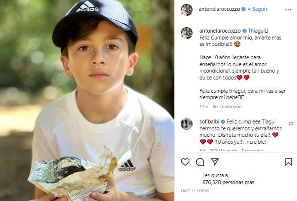 Con un pequeño gesto, Anto dejó en claro que la dedicatoria era un sentimiento compartido con su marido, Lionel Messi, ya que lo etiquetó en la publicación que rápidamente se llenó de likes y comentarios. Entre ellos estuvo el saludo de Jorgelina Cardoso, esposa de Ángel Di María, quien expresó: “¡Feliz cumpleaños Thiago! Que seas muy muy feliz siempre”.