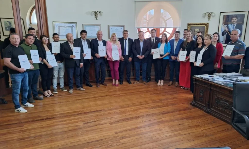 Este jueves, en el ministerio de Gobierno e Innovación Pública, sito en Casa de Gobierno de la ciudad de Santa Fe, su titular Fabián Bastia y el ministro de Economía Pablo Olivares, acompañados por el Senador Felipe Michlig y el Diputado Marcelo González, firmaron convenios de aportes del Programa “BRIGADIER” para 14 destinatarios del departamento San Cristóbal por un monto total de $ 414.794.583,44 (ver detalle en gráfico abajo), los cuales «se efectivizarán con las correspondientes transferencias en los próximos días».