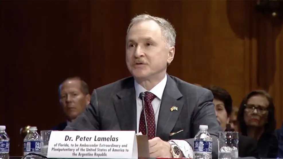 Peter Lamelas, quien fue designado por Donald Trump como nuevo embajador de Estados Unidos en Buenos Aires, se presentó este martes ante la Comisión de Relaciones Exteriores del Senado norteamericano, donde brindó un discurso.