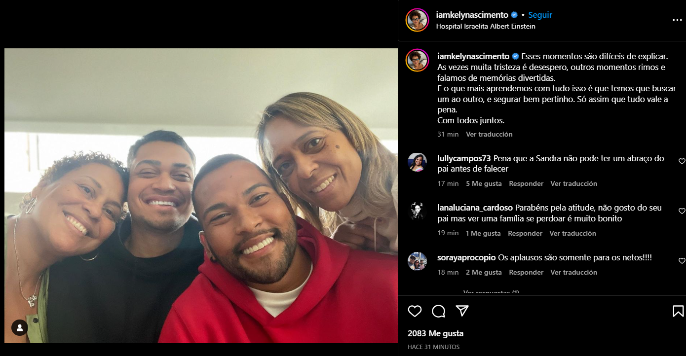 En ese contexto, Kely Nascimento, una de las hijas del astro, publicó un sentido mensaje en sus redes sociales que hace referencia al estado de su padre. A través de su cuenta de Instagram, expresó: “Estos momentos son difíciles de explicar. A veces hay mucha tristeza y desesperación, otras veces nos reímos y hablamos de recuerdos divertidos”.