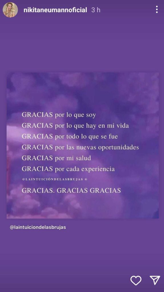 Horas más tarde comenzó a recibir las felicitaciones de parte de los distintos actores del espectáculo. Nicole Neumann decidió hacer un llamativo posteo en sus redes sociales. La novia y la ex esposa de Fabián Cubero no se llevan muy bien, por eso la modelo decidió dar su versión a través de su Instagram y no felicitarla.