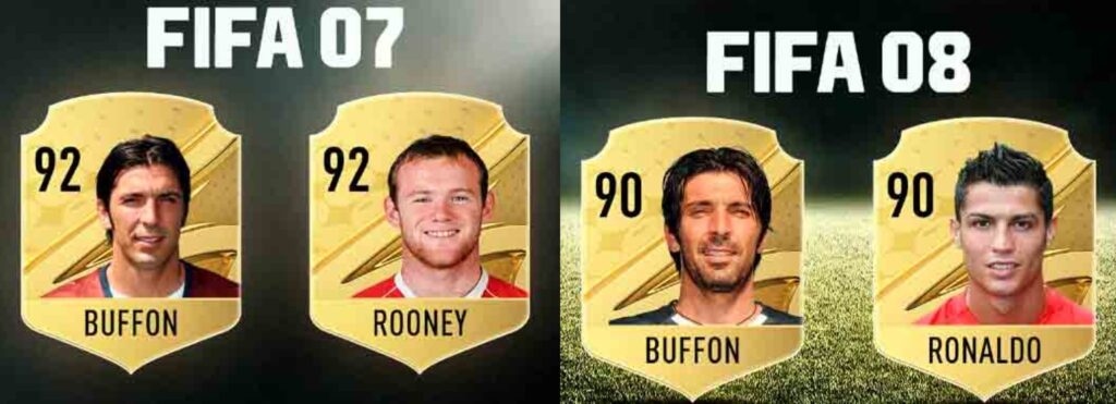 El FIFA 07 fue el último que no tuvo ni al rosarino ni al portugués. En esa edición, el videojuego tuvo a Gianluigi Buffon y a Wayne Rooney, jugadores de la Juventus y del Manchester United, respectivamente. Luego, en el 2008, el arquero repitió pero ya apareció un joven Cristiano Ronaldo con una media de 90 que hacía sus primeras apariciones en el Rojo de Manchester.