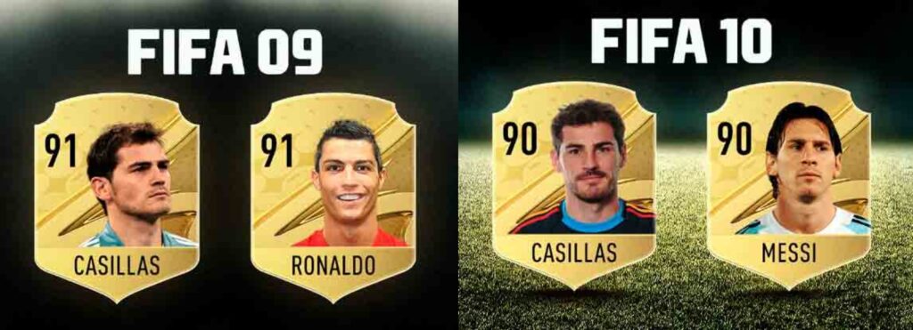 En el FIFA 09, el portugués volvió a aparecer entre los mejores valorados del videojuego de fútbol. Esta vez, también estuvo acompañado por otro arquero, pero en este caso fue Iker Casillas del Real Madrid. En la edición 2010, Messi comenzó a ser de los que más valoración tenían. Seguía estando el guardameta español pero el argentino se sumó a él con una media de 90.