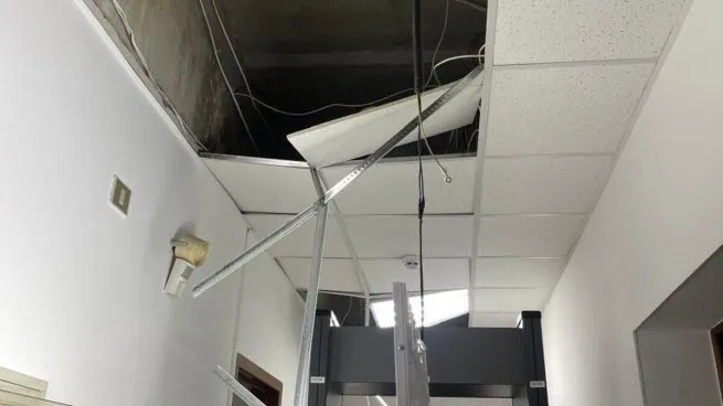 El daño ocurrió hoy cerca de las 7 de la mañana, cuando se dio un nuevo ataque ruso a la capital ucraniana. Los misiles provocaron el estallido de los vidrios del edificio, además de provocar el desprendimiento de mampostería del techo.