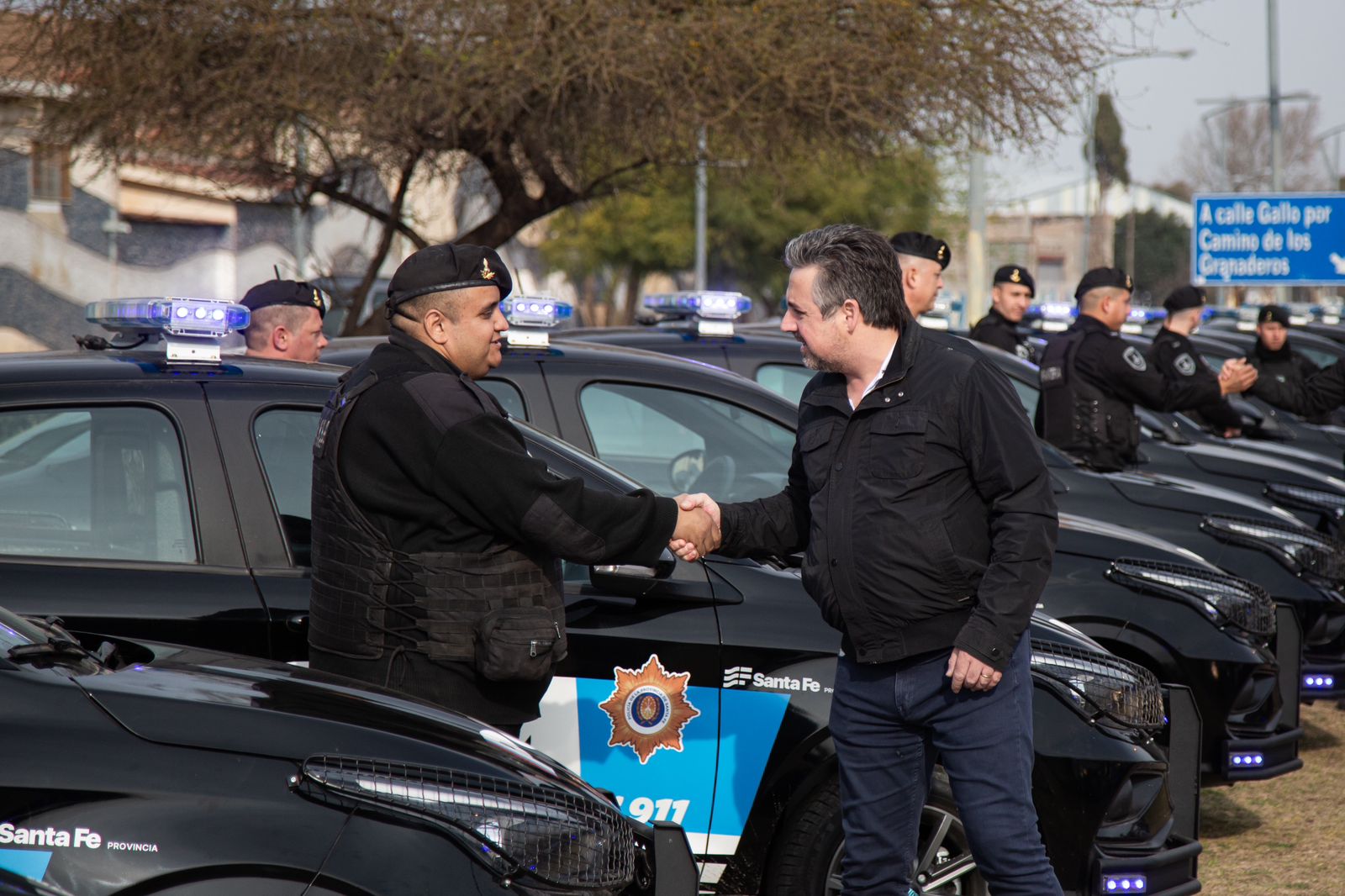 El ministro de Justicia y Seguridad explicó que “nuestro gobernador Maximiliano Pullaro nos ha fijado objetivos ambiciosos en un momento complicado: tener ciudades seguras y devolverle la tranquilidad a los santafesinos. Cuando asumimos la gestión la recibimos con 400 homicidios dolosos en un año y salimos a pelearla con escarbadientes, con lo que había. No tenemos que rendirnos en esa misión que nos han encomendado. Ahora empiezan a llegar las cosas que necesitan, ya empiezan a llegar nuestros nuevos patrulleros, van a empezar a llevar armamento letal y no letal, municiones, chalecos, uniformes, reformas legales para poder incrementar la proactividad en calle, afrontando la vicisitud de todos los días”.