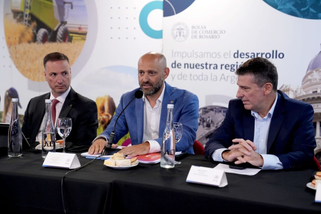 Los ministros de Obras Públicas de Santa Fe, Lisandro Enrico, y de Desarrollo Productivo, Gustavo Puccini, encabezaron este jueves una mesa de trabajo junto a la Bolsa de Comercio de Rosario, donde presentaron el Circuito de Ingreso a Puertos (CIP) y analizaron desafíos y posibles soluciones para el transporte, la logística y el funcionamiento de las terminales portuarias. La propuesta es impulsada por la gestión del gobernador Maximiliano Pullaro y también involucra al Ministerio de Economía, una pata clave en su desarrollo.
