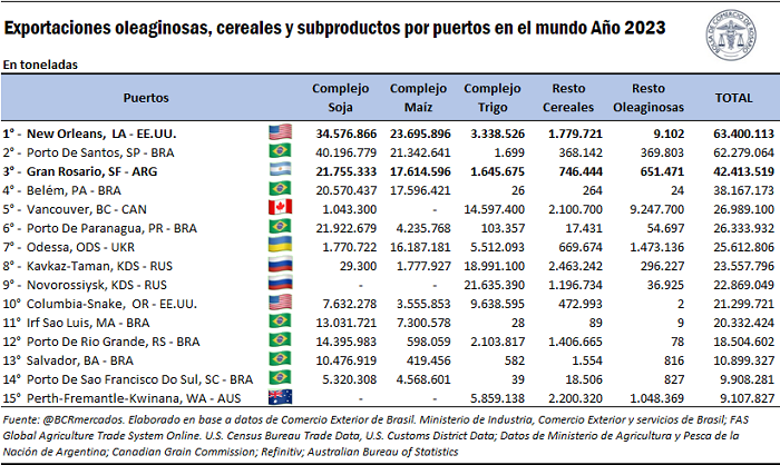 Además, en los años anteriores, solamente con los embarques que salieron del Gran Rosario, Argentina se había colocado en el tercer lugar superando al resto del mundo en volumen despachado. Es por ello que en los análisis realizados años previos, el enfoque estaba puesto únicamente en la comparativa entre puertos argentinos, estadounidenses y brasileños.