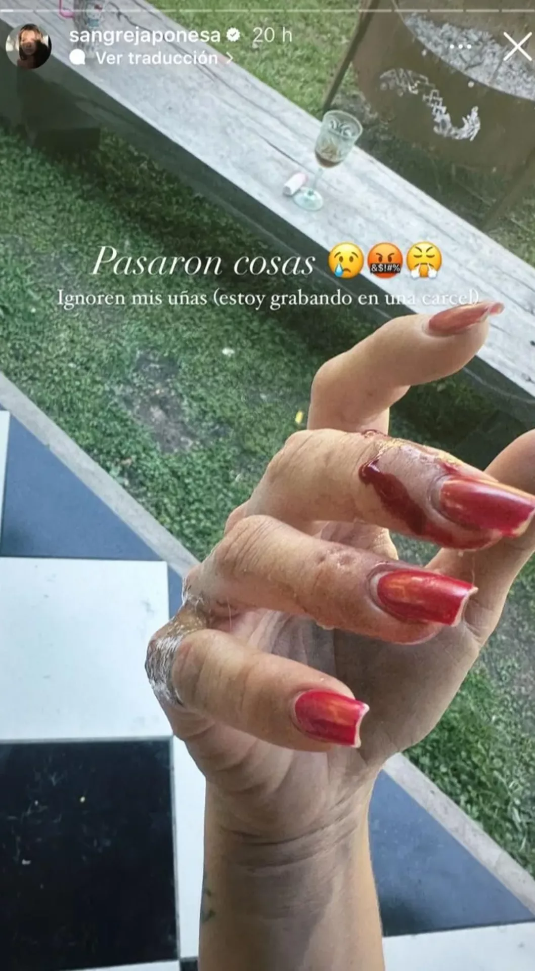 A través de sus historias de Instagram, la actriz comentó: “Pasaron cosas. Ya salí de la guardia. Por suerte no perdí el dedo. Ahora les cuento”. Acto seguido, la ex Casi Ángeles compartió una foto con el dedo ensangrentado.